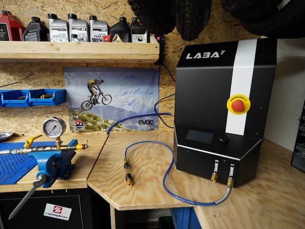 Damit jeder Dämpfer und jede Kartusche absolut zuverlässig arbeitet, setzen wir bei Bikecheckpoint auf modernste Werkstatttechnik. Zum Entlüften und Befüllen verwenden wir unsere LABA 7 Vakuumpumpe – ein Präzisionsgerät, das Luftblasen im System vollständig entfernt und das Öl exakt und blasenfrei einzieht.